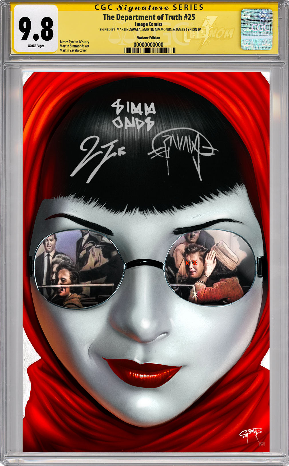 DEPARTMENT OF TRUTH #25 NYCC EXCLUSIVE BY MARTIN ZAVALA (BABUSHKA CONFIRMED) CGC SS 9.8 TRIPLE SIGNED BY SIMMONDS, ZAVALA & TYNION