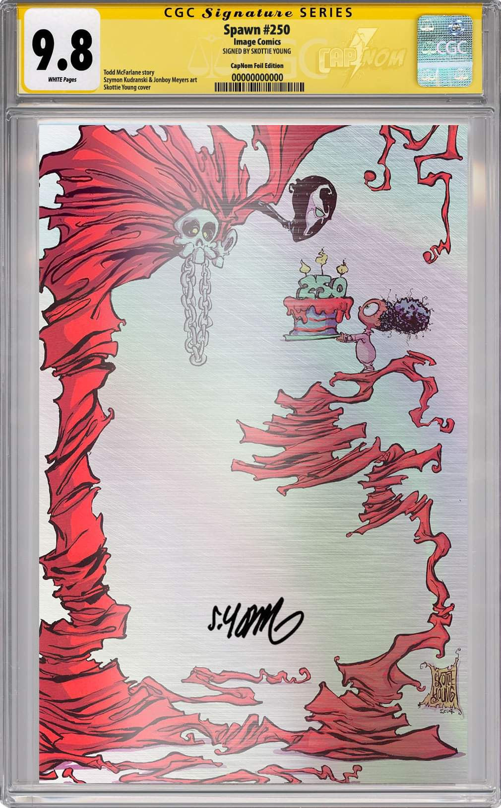 SPAWN 250 SILVER VIRGIN FOIL COVER BY SKOTTIE YOUNG MEXICAN FOIL EDITION CGC SIG SERIES SIGNED BY SKOTTIE YOUNG